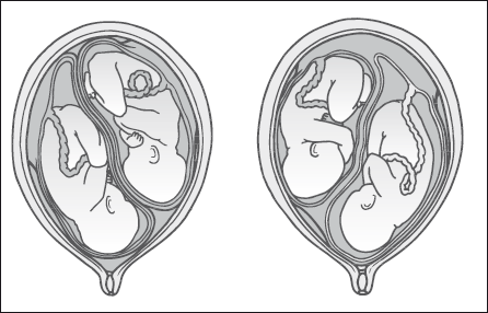 Вашему врачу придется теперь быть более внимательным, так как степень риска, обычная для нормальной беременности, теперь удваивается. Кроме того, весьма вероятны преждевременные роды. Дети обычно рождаются с меньшим весом (в среднем 2,5 кг), чем при одноплодной беременности. Очень многое будет зависеть от предлежания детей к концу беременности.