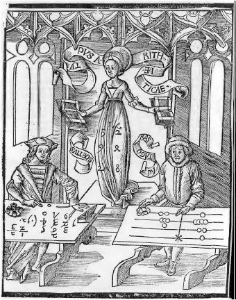 Рис. 1.7. Арифметика. Фронтиспис четвертого тома «Жемчужины философии» Грегора Рейша (1503). Иллюстрация Альбана Графа