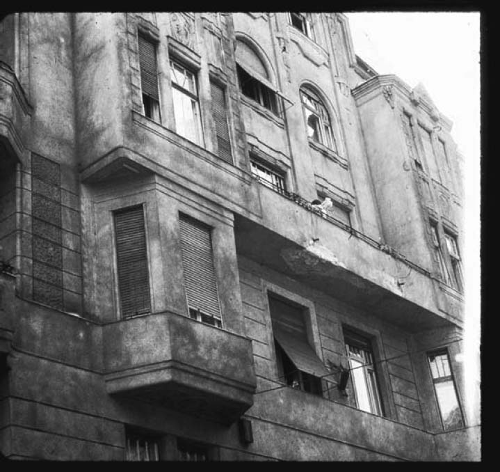 On that long-ago trip we took a break from sightseeing one day to visit two apartment buildings in Pest, fin de siècle Vienna-Secession edifices once grandly appointed, now derelict and coated in soot. Tatty shutters hung catawampus over the graceful arched windows of Váci út 28; the ceremonial balconies of Ráday utca 9 were visibly rotting. At Ráday 9, we climbed a set of dimly lit stairs to knock on a door. And toured a series of high-ceilinged rooms, partitioned now with plywood boards, shabbily furnished and overflowing with tenants, several families jammed into living quarters meant for one. I remember especially my father’s distress. This building, like the other one, once belonged to my grandfather. The flat was my father’s childhood domicile, the “royal apartment.” On the sidewalk again, my father looked back up at the dingy facade of Ráday 9, where a blond girl in a white hair ribbon peered down from a crumbling double balcony, the one attached to the opulent rooms where a boy named Pista had grown up. He took a photograph. It was the last frame on the roll.