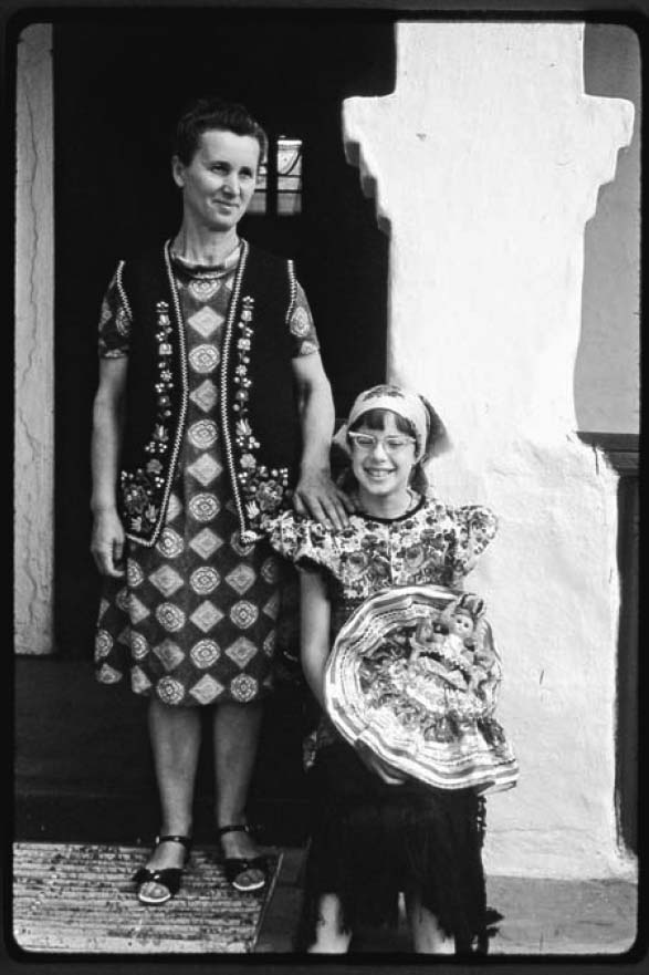 Throughout that visit, my father was in search of “authentic” Magyar folk culture. Driving through the countryside, we stopped to watch “traditional village dances” that were, in fact, staged tourist attractions: the government paid locals to whirl in what was billed as the national dress, the women in ornamental aprons and floral wreaths, the men in black vests and high leather boots. (As I’d learn later, the outfits and dances were only marginally traditional: they had been enshrined by urban nationalists in the mid-nineteenth century, and again in the interwar years, to create the impression of an ancient Magyar heritage.) In a village shop, my father insisted I try on folk dresses. As I modeled elaborately embroidered frocks, while cradling an elaborately clad Hungarian doll in my arms, my father took what felt like far too many rolls of film. The shop owner played stylist. Eventually my father purchased a lace-up bodice-and-dirndl number with a puffy-sleeved embroidered chemise, bell-shaped blue skirt, and a starched white apron with a tulip and rosebud motif. He thought I could wear it to school. His American daughter thought there was no way in hell she was going to junior high dressed as the Hungarian Heidi.