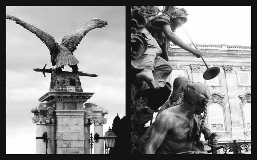 We descended the cobblestoned steps to the broad forecourt of the Royal Palace, a magisterial muddle of Neo-Medieval and Neo-Baroque architecture, topped off by a gigantic dome in the shape of a studded helmet. Presiding over the parade grounds was a heroic equestrian statue of Prince Eugene of Savoy, whose armies beat back the Turks from Hungarian territory in 1717, and a giant bronze of the Turul, the mythical bird that, according to legend, engendered the country’s thousand-year Magyar rule, the fabled “Hungarian Millennium.” The Royal Palace was now showcase to the National Library, the National Gallery, and the Budapest History Museum, a diadem set atop the city, containing the glittering artifacts of Hungarian antiquity and culture. I was pleased. Not only had I convinced my father to leave her own castle on the hill, I’d managed to get her to visit a palace that housed her past—or at least her nation’s past. Or at least the past her nation claimed to have, for its history was as shrouded in fancy as my father’s.