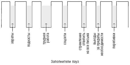Все кажется совершенно очевидным, здоровым и разумным. (Даже свирепые профессионалы боевых искусств отдыхают минуту между раундами.) Но нам кое-что мешает – это заполнители. Мы находим для себя бесконечные виды занятости, которые вливаются в наше важнейшее «белое пространство».
