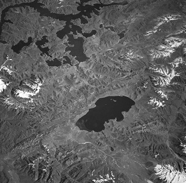 Озера Ямдрок Юмцо (вверху) и Пума Юмцо из космоса. 1997 г.