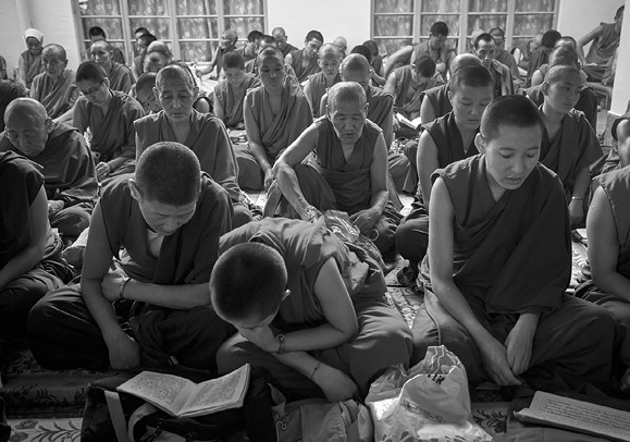Тибетские монахи читают и молятся в буддийском храме в Маклеод Гандж. Малая Лхаса, Индия