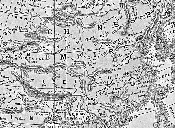 Карта Цинского Китая. Тибет находится между Китаем и Индией