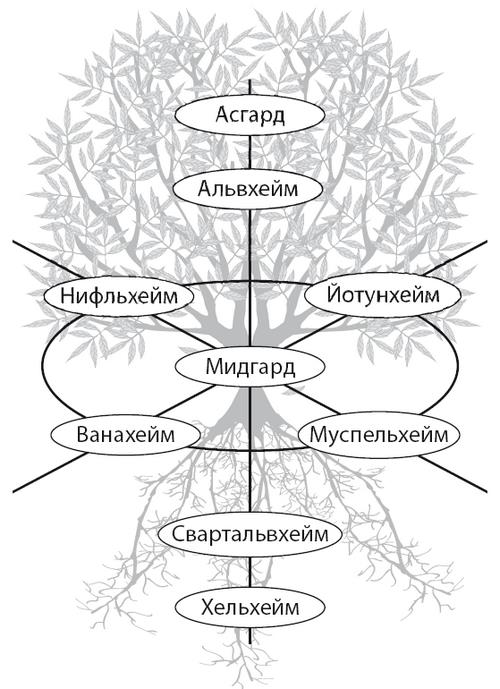 Один из вариантов расположения миров на ясене Иггдрасиль