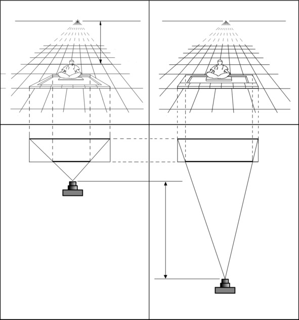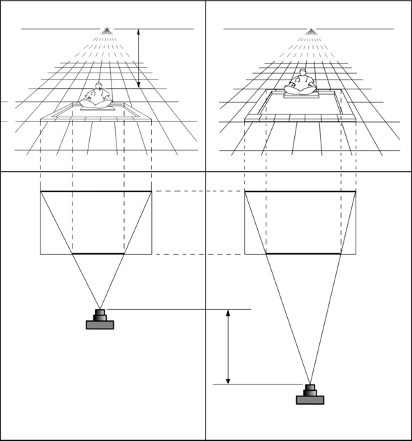 The following figure shows three options for the relationship, the distance from which the 3D drawing of the cube was photographed, and the distance from the camera to the cube in the preliminary photograph or sketch.