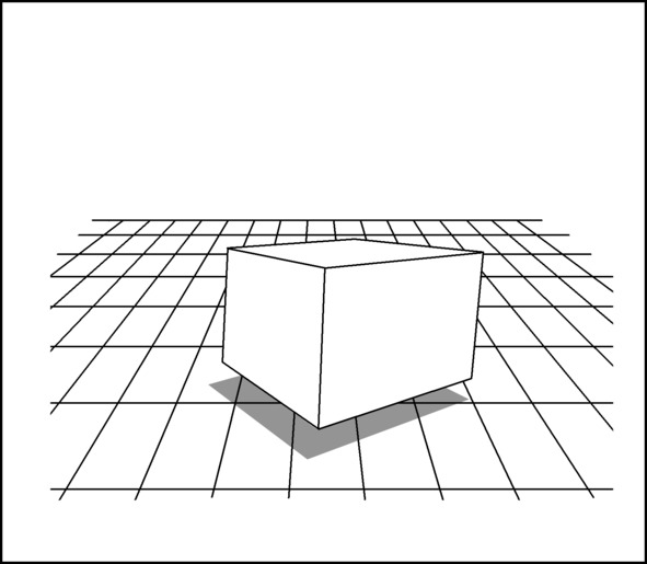 The cube is drawn so that its horizon coincides with the horizon of the site. In this case, the top face of the cube looks parallel to the floor surface of the room. Something like this should look like a cube drawn according to the laws of perspective (geometry), and not according to a photograph. Try to quickly look from the top picture to the bottom picture. Distortion of perspective becomes apparent. In any case, I can see.