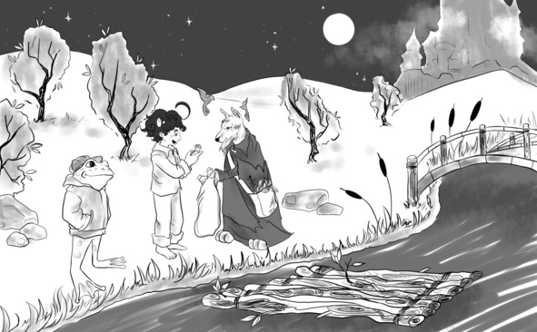 Пока Филипп надевал обувь, Алабачо столкнул с берега плот, и компания в составе жабы, мальчика и собаки отправилась в путь.
