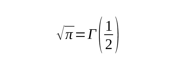 Каждый корень вида на этом и подобных скриншотах связан с гамма-функцией с полуцелым аргументом (). Все подобные формулы исходят из общей связи интегралов Гаусса и гамма-функции. Константа добавлена для иллюстрации, а основа – это прямая связь гауссовых интегралов с гамма-функцией.
