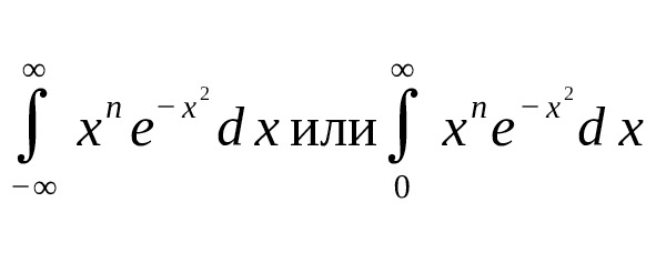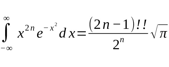 – Для четных степеней $ x {2n},e {-x^2} $ интегралы выражаются через числа, которые содержат произведения факториалов и $ \sqrt {\pi} $. Например: