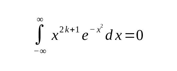 – Для нечетных степеней $ x {2n+1},e {-x^2} $ интегралы по всей оси равны нулю, что связано с нечетностью функции относительно $ x $.