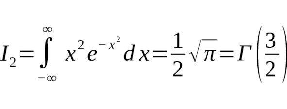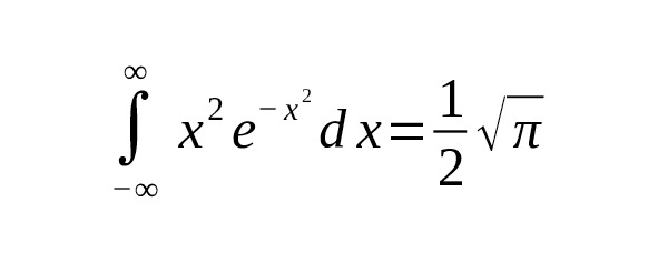 – $ \int_ {-\infty} ^\infty x^2 e {-x2} dx = \frac {1} {2} \sqrt {\pi} $