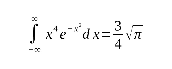 – $ \int_ {-\infty} ^\infty x^4 e {-x2} dx = \frac {3} {4} \sqrt {\pi} $