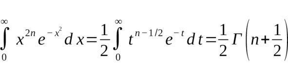 Это означает, что интегралы «гауссового» типа с четными и нечетными степенями $ x $ напрямую связаны с гамма-функцией от полуцелого (дробного) аргумента [14] [17].