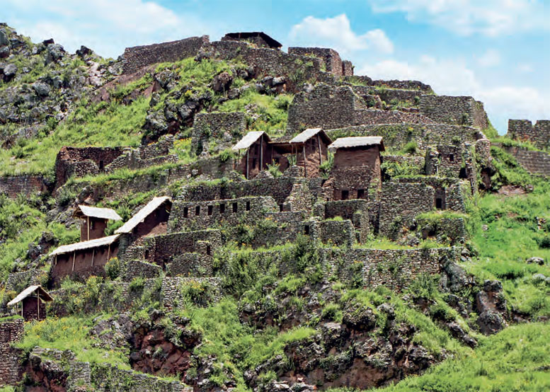 От Куско до священного озера Титикака, на берегу которого расположен город Пуно, 390 километров. Дорога, муторно петляя по межгорным долинам северной части высокогорного плато Альтиплано, привела к громадной глиняной стене высотой не менее двадцати метров – это всё, что осталось от центральной части храма инкской эпохи. Рядом частично отреставрированное селение: остовы домов, разделённых улочками.