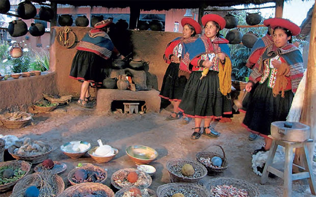После Ольянтайтамбо побывали ещё в двух крепостях, а ближе к вечеру приехали в глухую горную деревушку, где в кустарных мастерских жизнерадостные и смешливые молодые ткачихи продемонстрировали нам все этапы получения пряжи из шерсти лам, альпак и её покраски. Индейцы для этой цели по-прежнему используют только природные компоненты: толчёные камни, растения, коренья, сушёных насекомых. Не прибегая к химии, они получают до двадцати цветов, а оттенки меняют, добавляя в краситель разные окислители, например сок лимона.