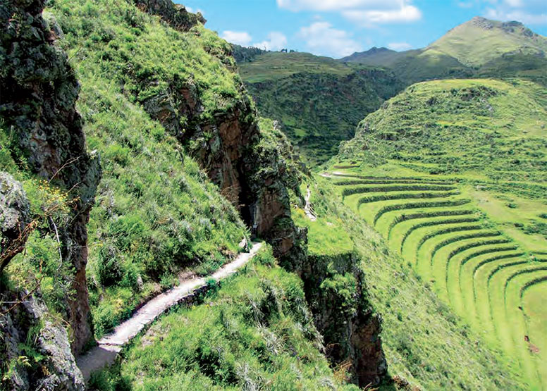 Благодаря коке они невероятно быстро преодолевали огромные расстояния по знаменитым инкским дорогам, мощённым плитами и обсаженным с двух сторон деревьями. Там, где путь преграждали горы, были пробиты тоннели, а через бездонные пропасти переброшены подвесные канатные мосты, сплетённые из волокон агавы. На самых высоких перевалах имелись навесы. В их тени гонцы и путники могли отдохнуть и полюбоваться панорамой гор, таких высоких, что вершины упираются в небо, и каньонов, таких глубоких, что, казалось, их дно достигает центра земли.