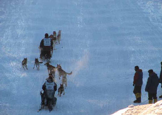 Вскоре вслед за упряжками промчались три «Сканди». Водители на ходу поприветствовали нас поднятыми крагами. Лиц за натянутыми на голову балаклавами и громадными очками не разглядеть.