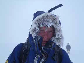 Разбушевавшийся буран то выл голодным волком, то по-разбойничьи свистел, то стонал, как раненый медведь. Ночь тянулась бесконечно… В голове каждого крутились тревожные мысли, невольно проигрывались худшие варианты. Но к утру ветер выдохся, подутих. С трудом выбравшись наружу, принялись откапывать палатки – из снега торчали лишь оранжевые макушки. К счастью, обещанный сорокаградусный мороз миновал эти места. Наш метеоролог Николай Коваленко, ежедневно фиксируя всевозможные параметры портативной метеостанцией, ни разу не зафиксировал температуру ниже 32 градусов. Сегодня – минус 21. Сказывается близость океана. В континентальной части всегда значительно холодней. Ветер при порывах достигал 25 м/с, но всё же это не вчерашний, сбивающий с ног, ураган, хотя тоже продувал до костей.