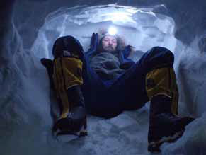 Видя, что дело принимает чрезвычайный оборот, Константин дал команду строить ветрозащитную стенку. Вот где пригодились две складные лопаты! Николай с Алексеем нарезали из спрессованного снега плотные, увесистые кирпичи, а все остальные укладывали их друг на друга с наветренной стороны. Снегоходы и сани поставили для ослабления натиска перед возведённой стеной. Но даже под такой защитой каждую палатку приходилось натягивать вчетвером – трепещущее полотнище вырывалось из рук, пляшущие на ветру дуги никак не хотели заходить в сетчатые проушины.
