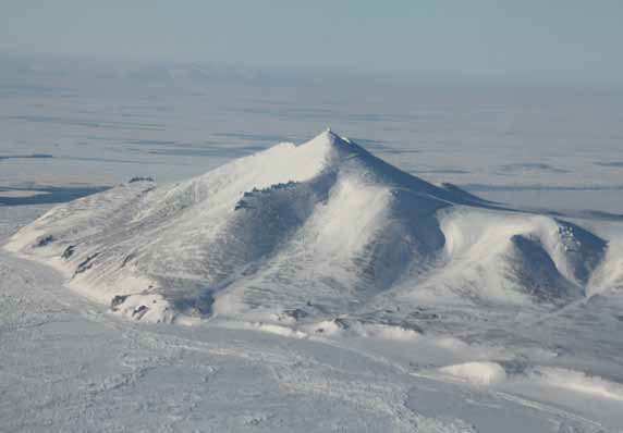 В кузове трясло меньше, чем в санях, и мы имели возможность полюбоваться северными пейзажами. Время от времени переводя взор на проём дороги, высматривали знаменитый мыс: именно у его подножия обосновался посёлок Уэйлс. Несколько раз ошибочно принимали за него выныривавшие отроги. Наконец показался седоватый горб, упёршийся в бескрайнее ледовое поле Берингова пролива. Первым разглядел его Андрей. Пересиливая грохот гусениц, он прокричал: «Мыс! Ура, ура, мыс!» Лёха, глянув на GPS, кивнул: точно!