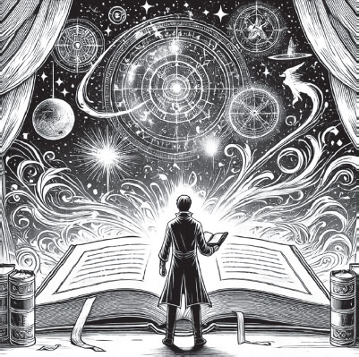 На одной из дверей пещерной обители действительно висел внушительный навесной замок. Зато другая, тяжёлая каменная дверь, отворилась от первого прикосновения. Молодые люди вошли внутрь. Вместо потолка – объёмное Небо, как будто разделённое на этажи, но прозрачность его позволяла увидеть вышестоящий уровень. Этажи переходили друг в друга не лестницей, а закручивающейся лентой, на переходах поднимающейся резко вверх. Полумрак не позволял путешественникам чётко разглядеть, что там происходит, но казалось, что даже звёзды у разных этажей небосводов – свои.