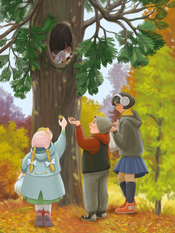 С другом Петькой мы вдвоёмВновь сегодня в парк идём.Он биолог и студент,И ему семнадцать лет.Первый курс он изучает,Но о парке много знает.Я ж – «евонный» ученик,Так мне баба говорит.Птиц считаем вместе с Петькой,Изучаем парк столетний.Ремонтируем кормушки,Даём белкам печенюшки.Белки любят гриб сухой,Едят хлеб, но не ржаной!Под запретом «кириешки»…Как им нравятся орешки!Белка сядет на ладонь,Покорми её, не тронь!