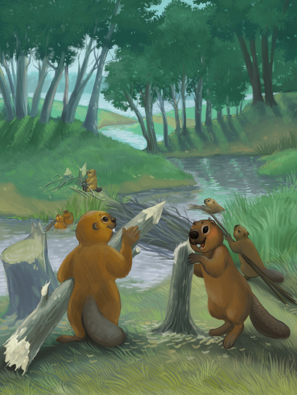 Какое небо сине-голубое,Какие кудри редких облаков.Плотину с домиком на речке тихой строитАртель строителей, мохнатеньких бобров.Весной и летом эти лесорубыГрызут и валят близлежащий лес.И не жалеют собственные зубы,К зиме готовят свой деликатес.Осину, иву, тополь и берёзу,Лещину, липу, черёмуху и вязТаскают на себе, без лесовоза,По нраву им коры большой запас.Ещё они – речные водолазы,Хвостом и лапками гребут, словно веслом.Из толщи вод выныривают сразуВ запрятанный под берегом свой дом.И там зимуют, не боясь мороза,Мехами укрываясь от невзгод.Среди бобров живёт старый философ,Детишек учит, знания даёт.Бобрята знают, как восходит Солнце,Ночует где… И где живёт Луна.Хотя у них в норе и нет оконца,Науки изучают все сполна.