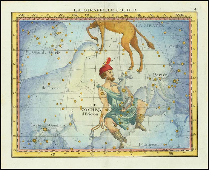 Звезда Капелла (на этом рисунке на спине козы) в созвездии Возничего