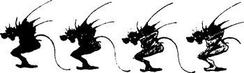 Не тут-то было: лезет на него сила нечистая, пристает, зубы скалят, копытами стучать, когтями грозятся, хвостами щекочат.