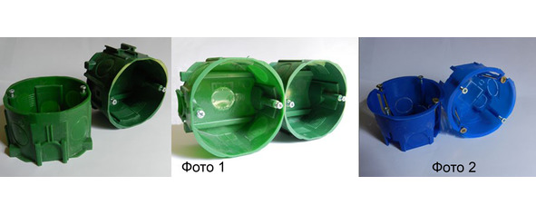 Элементы для скрытой установки монтируются в подрозетники (монтажные коробки). Если стены бетонные или кирпичные, то используются монтажные коробки для установки в бетон (фото 1). Для гипрочных перегородок существуют специальные коробки – фото 2.