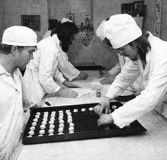Послушники на просфорне. Оптина. 1992 год