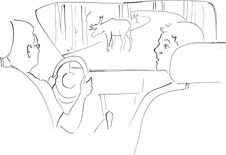 Попробовали. Едет. Со скрипом, боком, но едет. И решили мы вместо того, чтобы ехать в ГАИ, поехать в Дмитров. Аккуратно, не спеша. Все быстрее будет, чем через Москву добираться. И поехали. Едем, ночь непроглядная. Фары светят куда-то в бок. Вокруг дороги темный лес. Да и сама дорога, то подъем, то спуск по холмам, да и обледенелая к тому же. Скорость держим километров двадцать в час. Ну и планировали часа за два добраться. И вдруг, я заметил вдали, на дороге, какое-то белое пятнышко мелькает. Но фары-то не туда светят, и не видно ни чего. А когда поближе подъехали, увидели: прямо перед нами лось. Он шел по дороге, к нам задом. На заднице у него было белое пятнышко, и во время движения оно колыхалось то вправо, то влево. Мы уже почти вплотную подъехали, чуть не врезались. Миша резко ударил по тормозам и нас закрутило на дороге. Раза четыре или пять развернуло вокруг. Лично я вцепился обеими руками в «торпеду» и даже сосчитать, сколько раз вертануло, не смог. Обычно говорят, что успели что-то подумать, даже помолиться. Я ничего не успел: раз, карусель, а потом все встало. Ну, ничего себе, доехали домой. Мишка сидит и весь трясется. Уж не знаю, отчего. Я смотрю в лобовое стекло и вижу, как на нас смотрит лось. И вперед, и назад пустынная дорога. Как нас не сбросило в кювет, не знаю. А лось потихоньку сошел с дороги в лес и скрылся в темноте. Все, – говорю Мишке, – едем пять километров в час, понял?