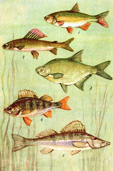1 – язь; 2 – хармус; 3 – лещ; 4 – окунь; 5 – судак