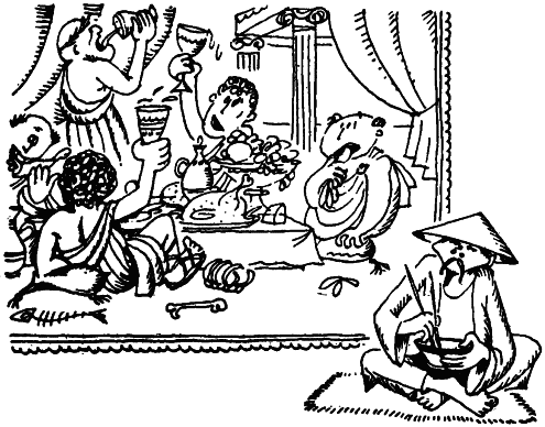 Механизм насыщения обычно приучен к определенному стилю работы. Европейцы в большинстве своем слегка переедают, потребляя пищи немного больше, чем расходуется энергии. К этому нас приучают чуть ли не с самого рождения. Переход на другой рацион дается нелегко. Если любого из нас кормить по нормам среднего китайского крестьянина, потребляющего так мало пищи, что она еле-еле покрывает его энергетические затраты, да к тому же неудовлетворительна по количеству и составу белка, мы постоянно будем испытывать чувство голода. Гораздо легче приспособиться к перееданию, если, конечно, предлагаемая пища кажется аппетитной. Безусловно, до лупенариев смогут дойти лишь немногие, тем более осилить без длительной специальной подготовки среднюю римскую пирушку или обед в стиле Лукулла.
