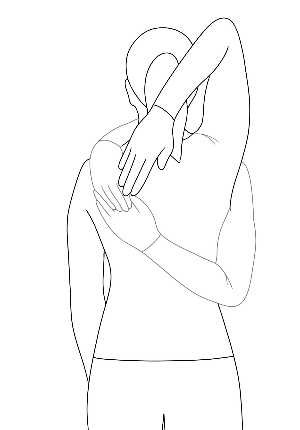 2) завести руку со стороны лица, коснуться верхнего угла противоположной лопатки;