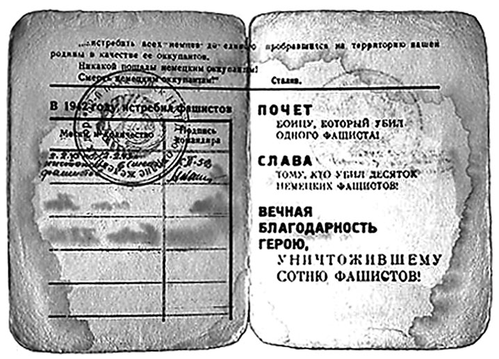 «…Выполняя задание командира дивизии – сорвать вражескую атаку, наша группа снайперов применила неожиданную для противника тактику. Заранее зная направление атаки, мы решили взять на мушку прежде всего командные и наблюдательные пункты неприятеля. Тринадцать снайперских винтовок, тринадцать пар глаз, вооруженных оптическими прицелами, нацелившись с разных точек на удобные для рекогносцировки пункты в глубине боевых порядков фашистов. Групповая охота. Заключается она в том, чтобы до наступления обезглавить вражеские роты и батальоны. Тут все просто: выйдут немецкие офицеры в последний раз осмотреть полосу наступления – посылай полагающийся им свинец. Если кто чрезвычайно храбр и выскочил, чтобы повести за собой солдат, – ты немедленно прошей ему голову. Заметишь, что с какой-то стороны враг успешно выступает, – направь туда все тринадцать снайперок и снимай сначала офицеров, а уже потом кого придется, чтобы никому не хотелось переступать этот рубеж, чтобы знали – тут ждет смерть. Одним словом, групповой снайперский огонь рассеянного и концентрированного типа ослеплял командные пункты врага и обрекал его на неудачу с первых же шагов.