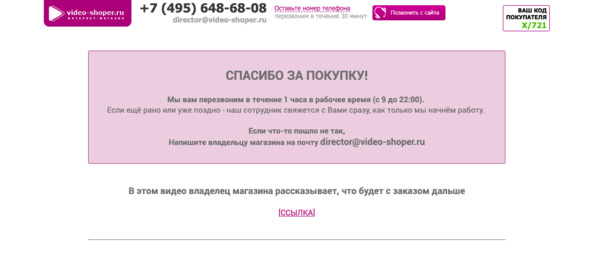 • на этой странице можно разместить небольшой ролик с личным обращением владельца магазина, в котором поблагодарить клиентов за то, что они выбрали именно ваш магазин