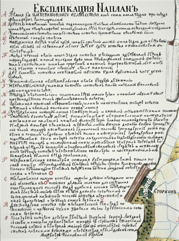 Описание плана битвы при Кунерсдорфе. Архив РГИА.