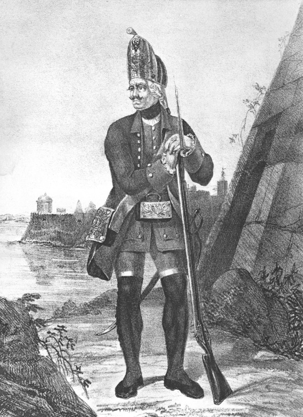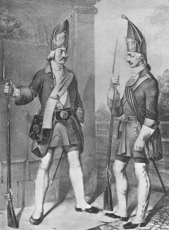 Гренадёр 1760 года. Гравюра 18 века.