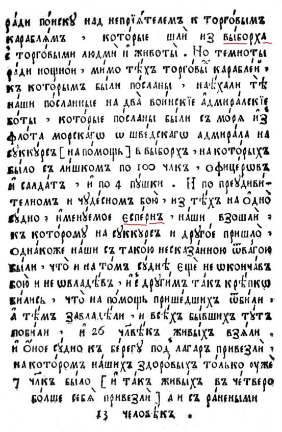 Здесь хочу показать читатель подлинный документ или записка Петра от 1707 года про флот на Балтике «Определение о начинающем флоте на Ост-зее» вот небольшая цитата, кто желает может попробовать прочесть по руке Петра: «1. Надлежит учинить полки морских солдат и разделить оных по капитанам, которым надлежит капралоф и сержантоф взять из старых солдат ради лутчего обучения строя и порядкоф. 2. Понеже сей флот суть новый и адмиралтейством его сие изправлен того ради надлежит, для скорости времени учинить хотя камисара адмиралитейскаго, котором подобает смотреть последующая: чтоб при наступлении сей зимы поставить флот вудобном месте на зимовье и всег что на оных обретается прибрать.