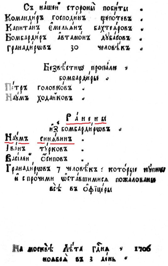 .Снимок с оригинальной Реляции 1706 года. Архивный документ.