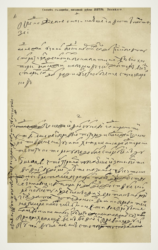 Снимок с оригинальной записки Петра 1706 года. Архивный документ.