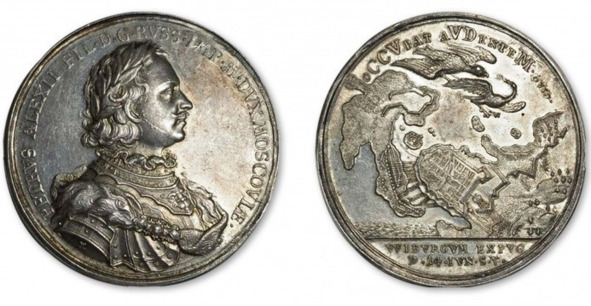 Летом 1713 года на рейде Гельсингфорса осаждаемого русскими войсками пришла шведская эскадра из 11 кораблей. Царь находился на корабле «Полтава» под управлением капитана Хендрика Гельма. Новый 54 пушечный трёхматчевый линкор сошёл со стапеля Санкт-Петербургского адмиралтейства. Строил его Федосей Скляев при непосредственном участии Петра.