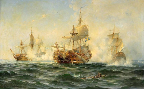 Эзельский бой. Картина 19 века. Художник Людвиг Рихард.