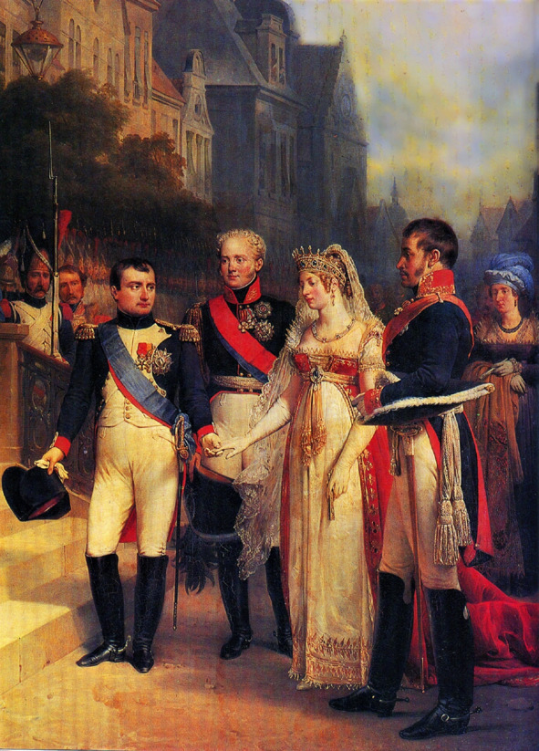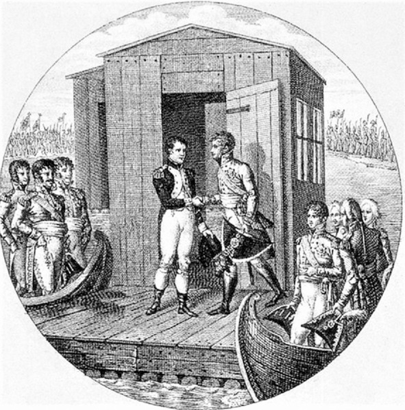 Король Пруссии понимая, что не договорится с Наполеоном, решил подключить свою жену. Этот момент можно видеть на картине Николя Госса, где Наполеон даёт руку королеве Пруссии герцогине Мекленбург-Стрелицкой Луизе и ведёт всех в дом советника юстиции Эрнста Зира, для утверждения секретного . Её дочь Шарлота, которой в то время всего 9 лет, позже будет супругой Российского императора Николая I, примет христианство с именем Александра Фёдоровна и станет матерью императора Александра II. Наполеон после первой встречи с Луизой писал своей супруге ». Французский Император ничего не уступил и на другой день объяснил прусскому министру Гольцу в жёстких словах всё что он думает о прусском короле. Пруссия потеряла половину своих земель и населения. На этих территориях образовалось герцогство Варшавское, во главе которого стоял король Саксонский. На левом берегу Эльбы создано Вестфальское королевство с Жеромом Бонапартом. Другие братья Наполеона названы королями Неаполитанским и Голландским. Тильзитского мирного договора «…мой друг, вчера прусская королева обедала со мной. Я противился, когда она пожелала меня обязать сделать ещё некоторые уступки ея мужу. Она была очень любезна… действительно прелестна, она для меня исполнена кокетства; но не будь ревнива, я навощённое полотно, по которому всё скользит. Мне бы обошлось слишком дорого, если бы я сделался галантным