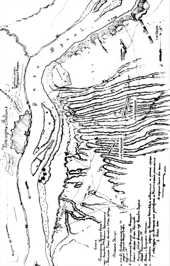 В это самое время около крепости генерал-лейтенант Александр Засс, к которому пришёл полк с генерал-майором Михаилом Воронцовым, пытались сдержать 30000 турецкое войско Измаила-бея. Турки заняли большой остров посреди реки Дунай. 30 сентября они сделали вылазку на правый наш фланг, где находились батальоны генерал-майора Иосифа Орурка. Они ожесточённо атаковали один из наших редутов. Видин