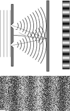 Двухщелевой опыт. Впервые был проведён Томасом Юнгом и впоследствии многократно повторён. Суть его была в следующем. Лазерный луч освещает пластину с двумя параллельными щелями, и свет, проходящий через щели, наблюдают на экране за пластиной. Волновая природа света вызывает явление интерференции, что проявляется на экране как чередующиеся светлые и тёмные полосы. Подобного бы не могло произойти, если предположить, что свет – это поток частиц. Ибо частицы летят только по прямой. И если бы свет был потоком частиц, то фотоны, пройдя через две щели, на экране сформировали бы две яркие точки (а не волновую картину). Тут всё понятно. Свет – это волна. Хотя всегда обнаруживается, что свет попадает на экран в виде отдельных точек (фотонов), а волновая картина (с чередующимися полосами) появляется из-за изменяющейся плотности попадания этих частиц на экран. Предположили, что в процессе полёта свет является волной, но, как только контактирует с экраном, становится частицей – фотоном. В таком случае один фотон должен проходить через обе щели одновременно (как волна) и лишь потом вновь «собираться» в одну частицу, попадающую на экран и формирующую волновой интерференционный рисунок. Совсем уж невероятно.