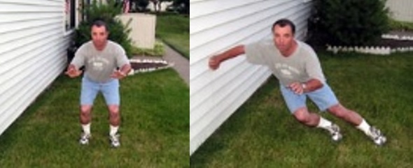 Загружаемая нога распрямляется, когда сильнее давит на пол, а другая нога сокращается, слегка сгибаясь и становясь как бы чуть короче (эффект велосипеда). Это ощущение удлинения/сокращения ног проще увидеть и ощутить, если вы выполните данное упражнение рядом со стеной, прислонившись к ней, когда нагружаете дальнюю от стены ногу.